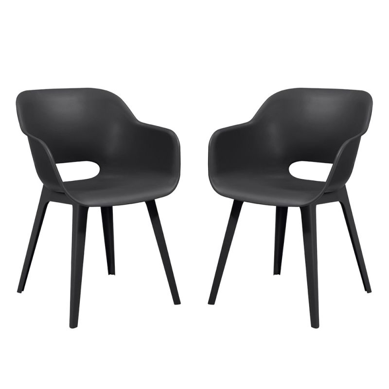 Akola Duo kerti szék grafit színben egyedi formájú, lekerekített háttámlával és karfával rendelkezik.