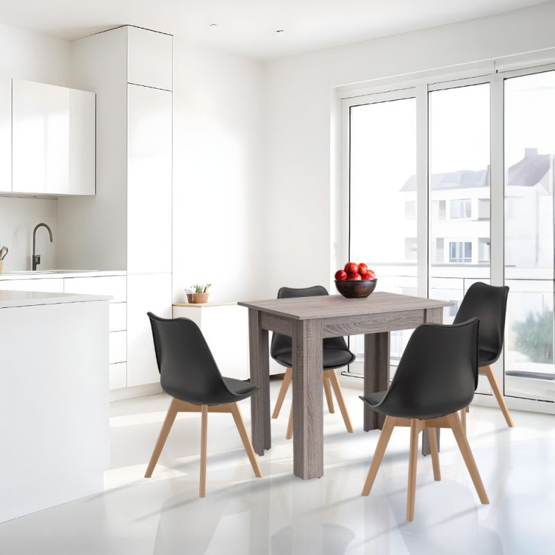 A Leziter márka Amina 4+1 étkezőgarnitúrája tökéletes választás modern lakásokba, éttermekbe és stílusos irodai konyhákba egyaránt. A garnitúra 4 db székből és 1 db asztalból, a népszerű Silla étkezőszék és a Yorki standard étkezőasztal harmonikus kombinációjából áll, egyesítve a funkcionalitást az időtlen dizájnnal. Az étkezőszett ideális 4 fő leültetésére és méretei miatt praktikusan elhelyezhető kisebb helyiségekbe is.