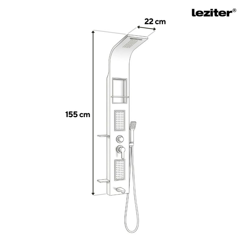 Az ANGEL hidromasszázs zuhanypanel egy lenyűgöző és praktikus megoldás a fürdőszobába, amely eleganciával és kényelemmel tölti meg a zuhanyzás élményét. Ez a zuhanypanel minden szempontból kiváló minőséget és fejlett funkciókat kínál, hogy a fürdőzés valódi élvezetté váljon. A zuhanypanel méretei 155 x 22 x 7 cm, ami lehetővé teszi a könnyű telepítést és a kényelmes használatot. Az ergonomikus dizájn és a méretarányos kialakítás gondoskodik arról, hogy ez a zuhanypanel harmonikusan illeszkedjen a fürdőszobai környezetbe, és helytakarékos megoldást nyújtson.