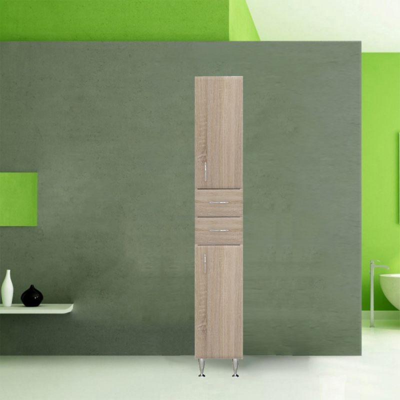 A fürdőszobabútor kevés helyet foglal viszont tágas pakolórésszel rendelkezik ahol kényelmesen elférnek a fürdőszobai pipere eszközök. Kevés helyigénye miatt kisebb fürdőszobák berendezésére is alkalmas, például panel lakásokban. A termék magas minőségű bútorlapból készül és színben passzoló élzárókkal van ellátva.