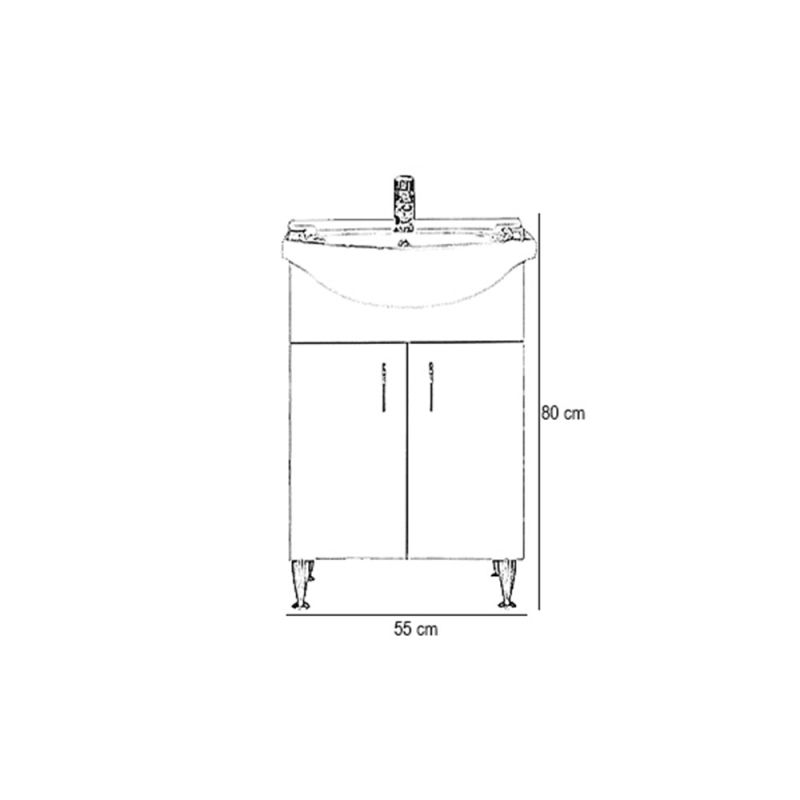 A fürdőszoba bútor kevés helyet foglal viszont tágas szekrénnyel rendelkezik ahol kényelmesen elférnek a fürdőszobai pipere eszközök. Kevés helyigénye miatt kisebb fürdőszobák berendezésére is alkalmas, például panel lakásokban. A termék magas minőségű bútorlapból készül és színben passzoló élzárókkal van ellátva. A fürdőszoba bútor mosdóval együtt kapható.