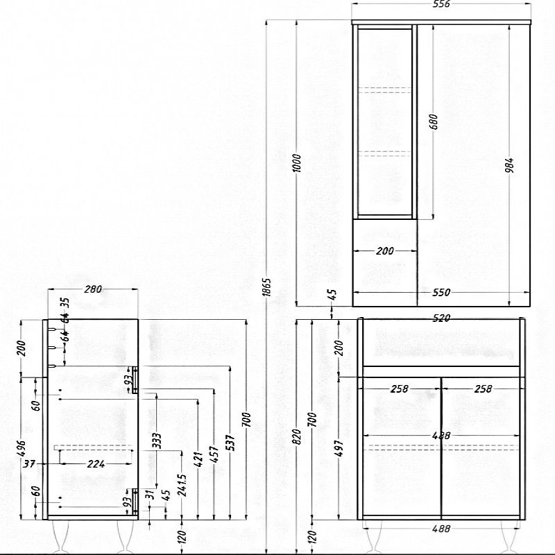 - Felső tükrös elem: 100x55,6x17,5 cm