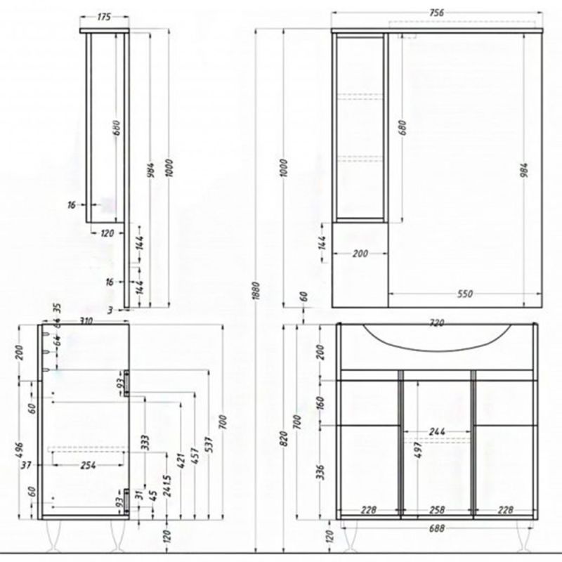 A fürdőszoba bútor kevés helyet foglal viszont tágas szekrénnyel és fiókkal rendelkezik ahol kényelmesen elférnek a fürdőszobai pipere eszközök. Kevés helyigénye miatt kisebb fürdőszobák berendezésére is alkalmas, például panel lakásokban. A termék magas minőségű bútorlapból készül és színben passzoló élzárókkal van ellátva. A fürdőszoba bútor mosdóval együtt kapható.