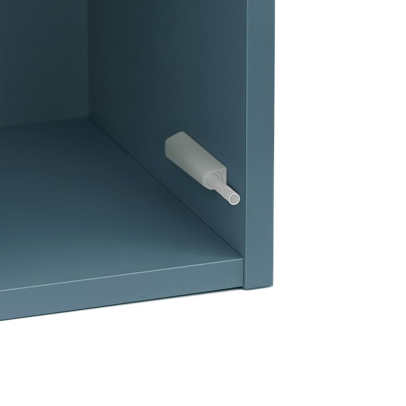 A Leziter petrol kék 1 ajtós Boxie fali szekrény ideális választás tudatos lakberendezőknek, kisebb lakások tulajdonosainak és mindazoknak, akik értékelik a variálható, dekoratív tárolókat.