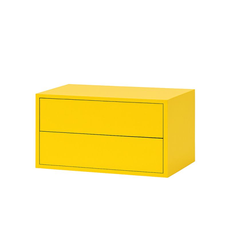 A Leziter sárga 2 fiókos Boxie fali szekrény ideális választás tudatos lakberendezőknek, kisebb lakások tulajdonosainak és mindazoknak, akik értékelik a variálható, dekoratív tárolókat.