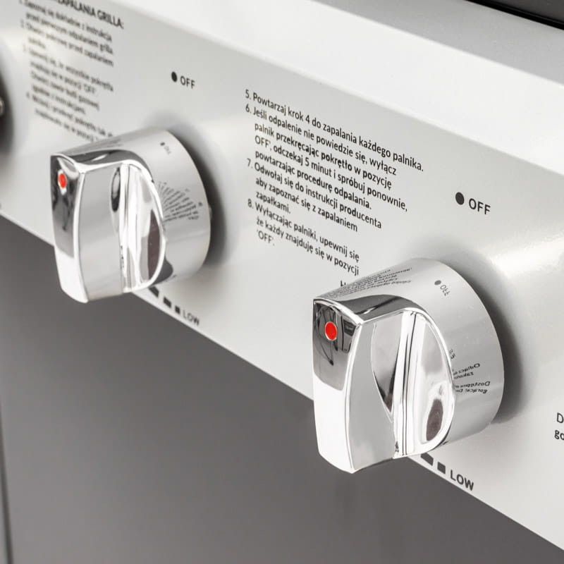 Ez a gázgrill számos funkcionális megoldással van felszerelve, ami rendkívül praktikussá és hatékonnyá teszi. A szerkezetben használt hőmérővel ellátott burkolatnak köszönhetően a sütési folyamat hatékonyabbá válik. Az optimális hőmérséklet fenntartása a grillen garantálja a tökéletesen sült és lédús ételeket. A gyorsan felmelegedő öntöttvas rács hatékonyan vezeti a hőmérsékletet, ami kényelmes sütést és kiváló minőségű ételeket jelent. Az ajtókkal ellátott tároló lehetővé teszi a tartozékok rendszerezését és a gázpalack esztétikus elrejtését. A készlet tartalmaz egy szűkítőt is, amely a gázpalack problémamentes csatlakoztatásához szükséges. A porszórt acélból készült szerkezet biztosítja a tartósságot.