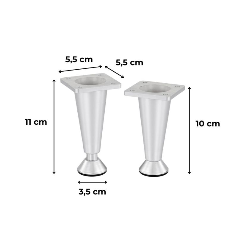 Az állítható magasság és a modern design miatt ezek a bútorlábak bármelyik helyiségben megállják a helyüket – legyen szó konyháról, fürdőszobáról vagy hálószobáról. A 5,5x5,5 cm-es rögzítő lemez és a négy perforált lyuk gyors és egyszerű felszerelést tesz lehetővé.