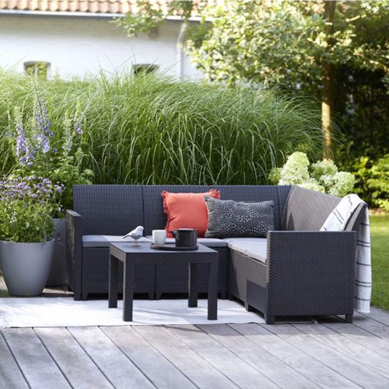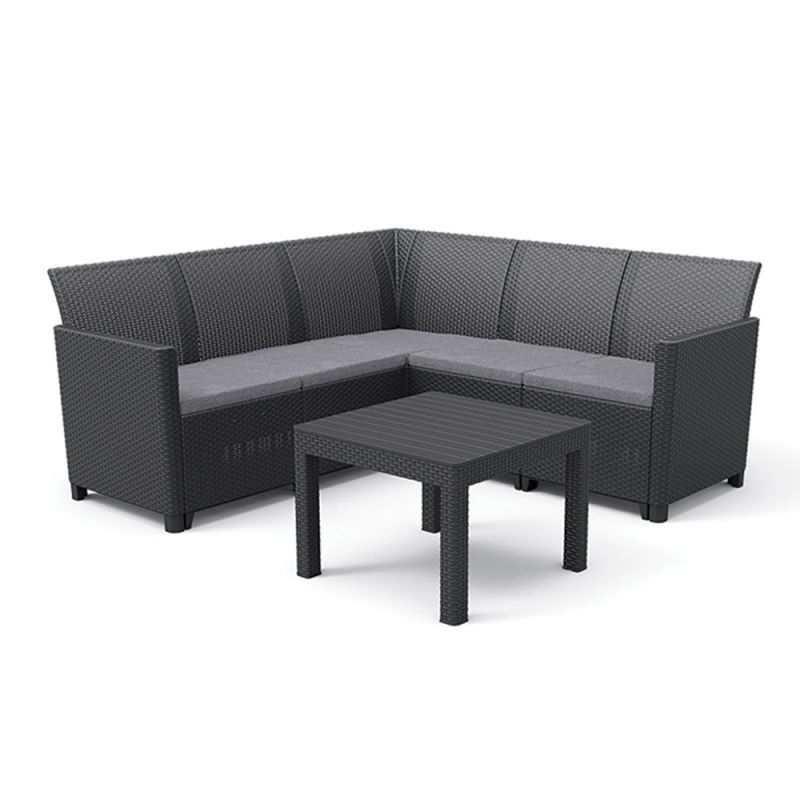 Claire 5 Személyes Kerti Sarokgarnitúra Orlando Asztallal Grafit színben – Tökéletes választás a kültéri összejövetelekre