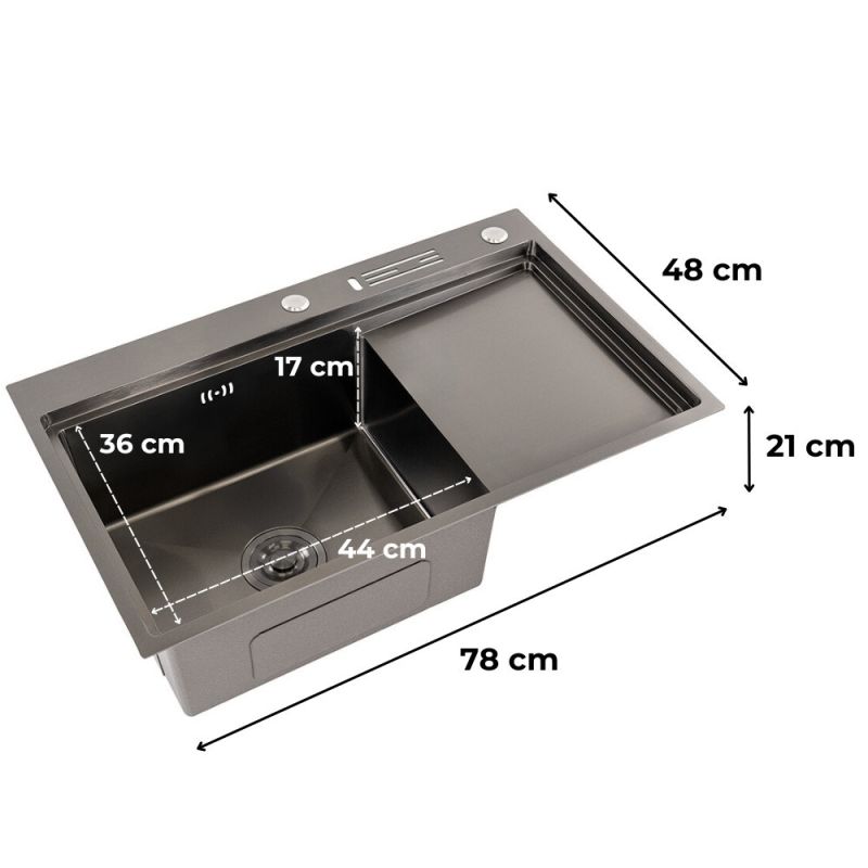 A matt fekete-bronz felület egyedi megjelenést kölcsönöz a konyhádnak. Elegáns, mégis időtálló, ráadásul a sötét árnyalatok kevésbé látványosak vízfoltok vagy apró szennyeződések esetén – így a mosogató hosszabb ideig marad rendezett és stílusos.