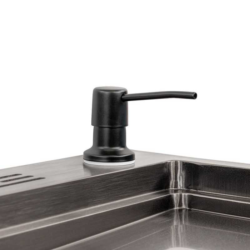 A mosogatószer-adagoló már alaptartozék, így nem kell többé flakonokkal zsonglőrködni – mindig kéznél van a tisztítószer, mégsem foglal helyet a pulton.