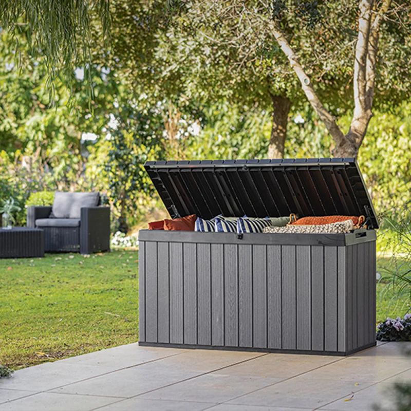 A funkcionális és tágas , 570 liter űrtartalmú kerti tárolót a neves Keter cég gyártotta, amelynek nagy tapasztalata van a műanyagból készült kerti felszerelések létrehozásában. A kerti tároló tökéletes hely a kerti székek, játékok vagy egyéb kerti felszerelések párnáinak tárolására. Noha fa kerti doboznak tűnik , ez csak egy stilisztikai eljárás, amelyet a gyártási folyamat során hajtanak végre. A Keter Darwin kerti tároló teljes egészében erős és tartós műanyagból készül. Ennek köszönhetően vízálló, ellenáll az UV sugárzásnak és környezetbarát is. A Keter termékek előállításához szükséges anyagok nagy részét újrahasznosításból nyerik.
