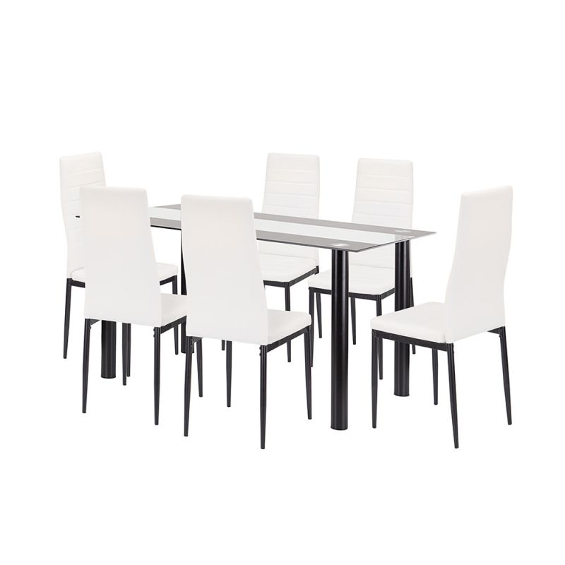 Denton 6+1 étkezőgarnitúra – Modern fehér-fekete stílus nagyobb asztallal és kényelmes székekkel