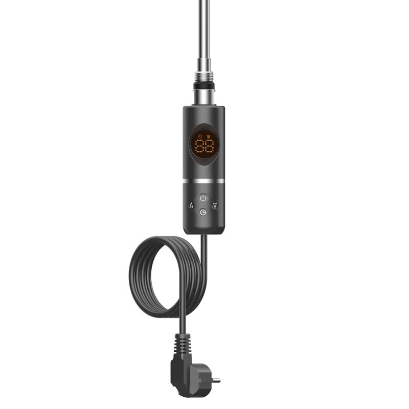 Elektromos fűtőpatron törölközőszárító radiátorhoz digitális hőfokszabályozóval 600W fekete – precíz vezérlés, nagy teljesítmény, modern design