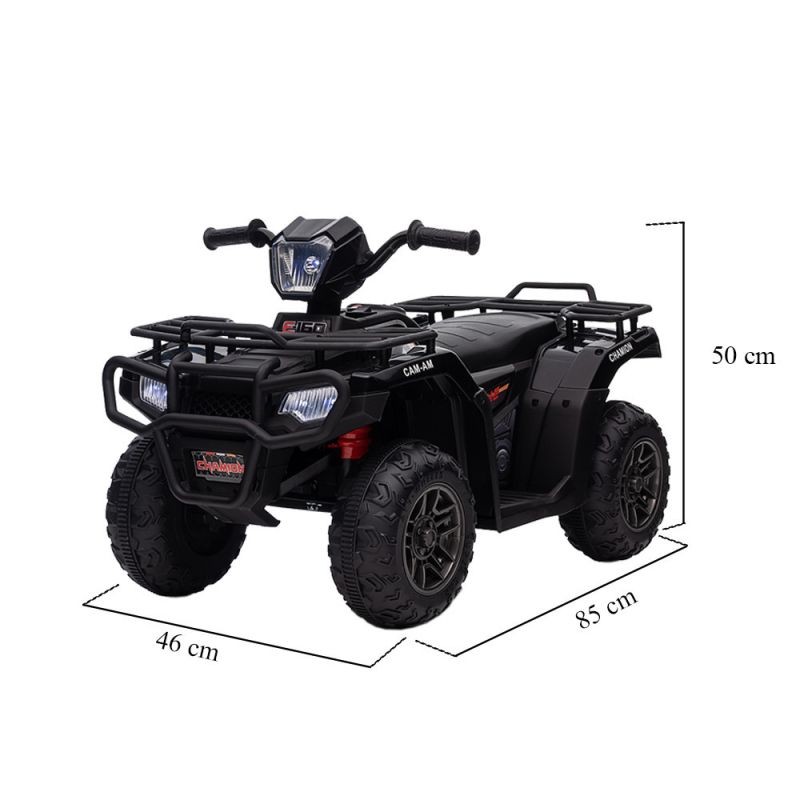 Erős Teljesítmény és Biztonság: Az elektromos quad 12V-os akkumulátorral rendelkezik, amely hosszantartó és megbízható játékélményt biztosít. A két 30W-os motor lehetővé teszi, hogy a quad könnyedén haladjon a különböző terepeken.