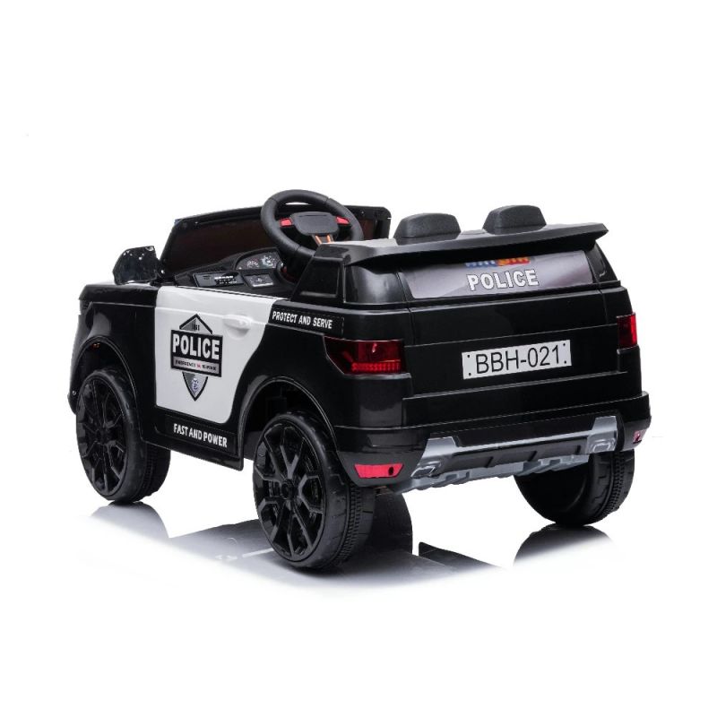 Az erős, 12V-os újratölthető akkumulátor, a szülők számára készült rádióvezérlés és a töltő tartozékok a termékhez. A rendőrautó fényszórókkal, MP3 csatlakozóval, visszapillantó tükrökkel és hanghatásos kormánykerékkel rendelkezik.
