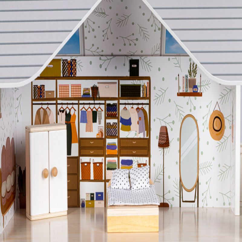 A ház szobáit tágasra tervezték, és lehetővé teszik a szabad játékot a nagyméretű babákkal.