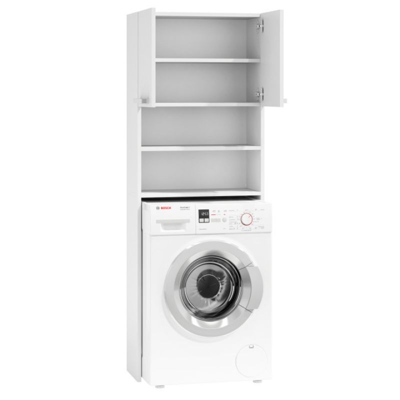 Függőleges fürdőszoba polc tökéletes megoldás azok számára, akik értékelik az okos megoldásokat. A szekrény úgy lett kialakítva, hogy . Ennek köszönhetően a mosógép felett két nyitott polcon és az ajtós szekrényben sok használható helyet nyerünk. A polcok és a szekrény felhasználhatók törülközők, tisztítószerek és egyéb fürdőszobai kiegészítők tárolására, miközben rendet és tisztaságot teremt a fürdőszobában.