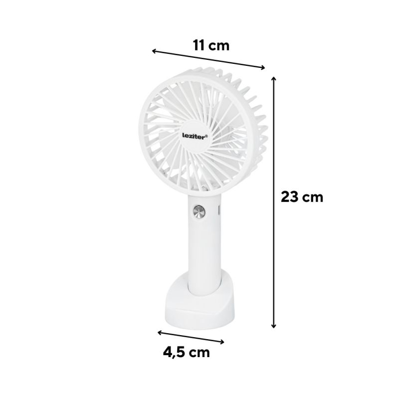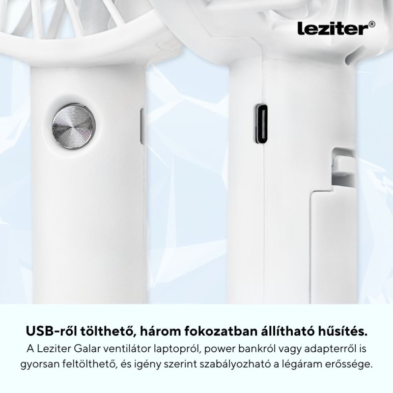 Galar kézi hordozható usb ventilátor tartóval 4 W 1200 mAh fehér szín Leziter Galar kézi USB ventilátor tartóval – frissítő levegő bárhol, bármikor Ismerős az érzés, amikor egy megbeszélés közepén, a buszmegállóban vagy az irodában egyszerűen elfogy a levegő? A Leziter Galar hordozható ventilátor pontosan ezekre a pillanatokra született. Könnyű, kompakt és erőteljes – azonnali enyhülést nyújt a legnagyobb melegben is, akár útközben, akár az asztalodon pihenve használod. A nyári hőség hatása az irodai teljesítményre és közérzetre A nyári forróság nemcsak kellemetlen, hanem csökkenti a koncentrációt, fáradékonnyá tesz és rontja a közérzetet. Ha irodában dolgozol vagy sokat közlekedsz, különösen nehéz elviselni, hogy nincs kéznél egy kis légmozgás, ami enyhítene a fülledt levegőn. Leziter Galar ventilátor előnyei – praktikus megoldás a mindennapi hűsölésre A Leziter Galar ventilátor nem csupán egy szimpla kézi ventillátor. Ez egy USB-ről tölthető, 1200 mAh-s akkumulátorral ellátott, ultrakönnyű (mindössze 120 g), mégis stabil teljesítményt nyújtó eszköz, amit akár a kezedben tartva, akár a tartójába helyezve asztali ventilátorként is használhatsz. Anyaga strapabíró PP műanyag, amely könnyű, ütésálló és tartós – vagyis pont olyan, amilyennek egy mindennapi használatra szánt eszköznek lennie kell. 4 fő érv, amiért érdemes hordozható USB ventilátort választani - Kézi és asztali használat egyben