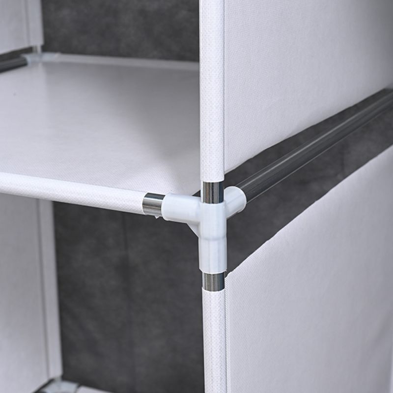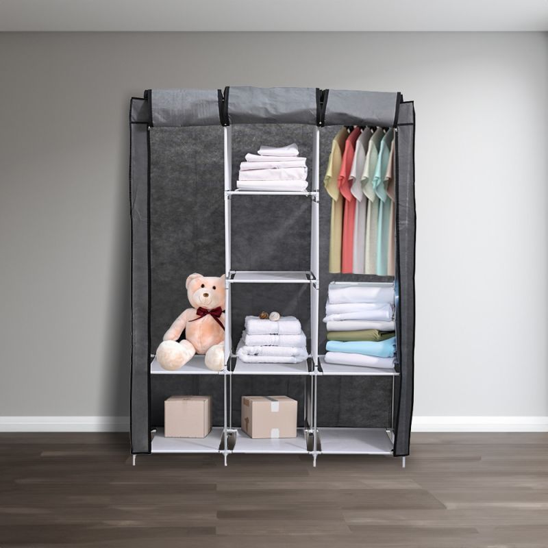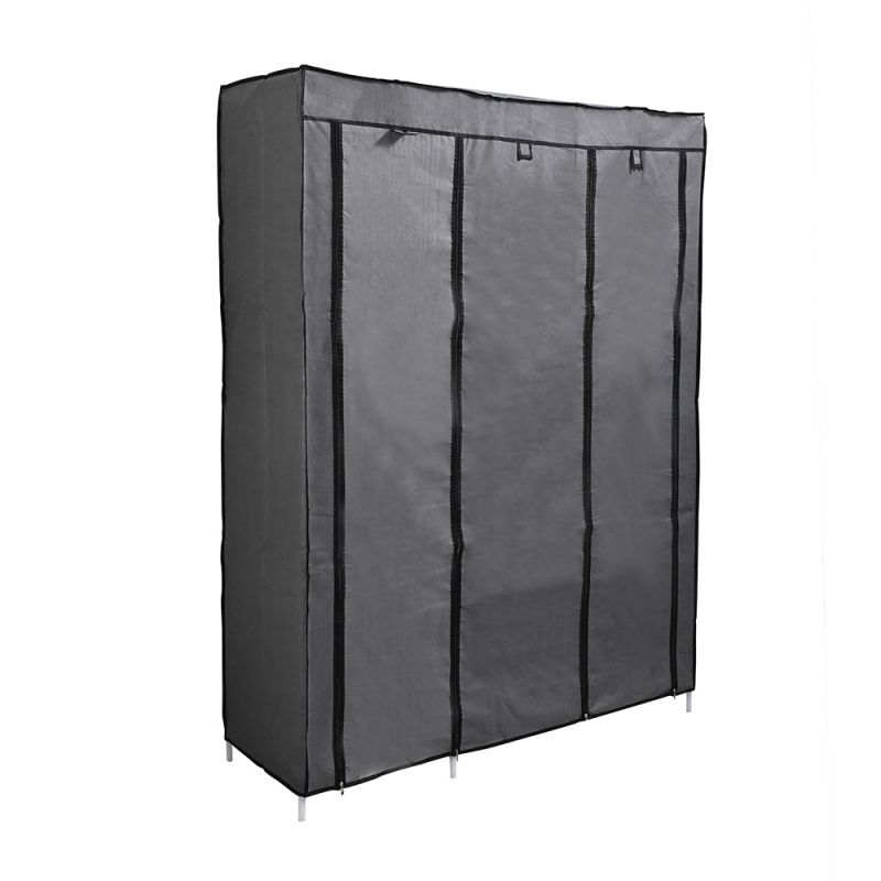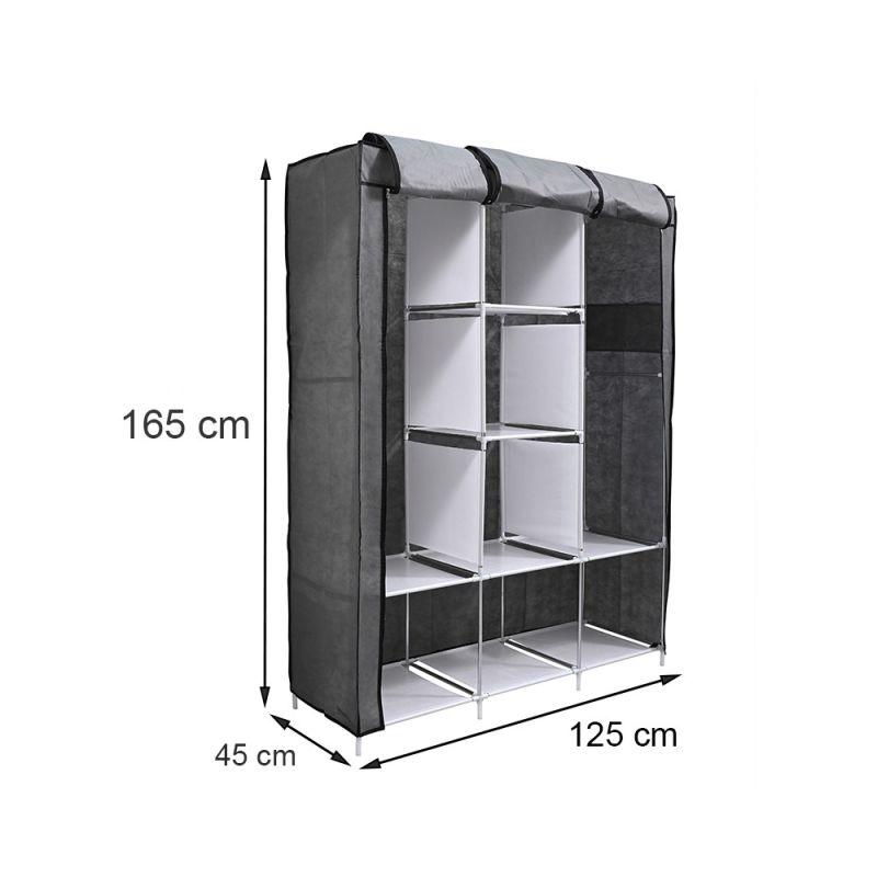 Gardróbszekrény LGSZ-04 SzürkeAz LGSZ-04 szürke színű gardróbszekrény egy praktikus és elegáns tárolási megoldás mindazok számára, akik rendszerezett és esztétikus módon szeretnék tárolni ruháikat és kiegészítőiket. Ez a könnyen összeállítható szekrény tökéletes választás bármelyik helyiségbe, modern és letisztult megjelenésével pedig minden belső térhez jól illeszkedik. Tulajdonságok- Anyag: Tartós fémváz és magas minőségű szövetborítás, amely megóvja a ruhákat a portól. A borítás cipzáros kialakítása megkönnyíti a szekrény zárását, és biztosítja, hogy a ruhák védettek legyenek a szennyeződésektől.