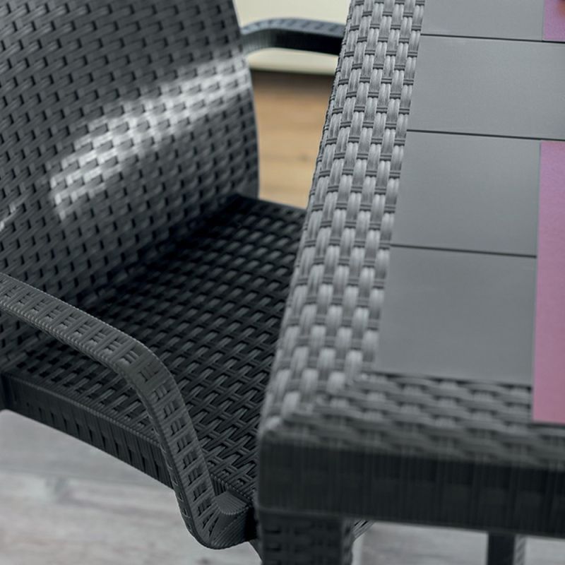 Strapabíró anyaga: UV sugárzásnak és az időjárás viszontagságainak ellenálló műanyagból készült. Az asztal ideálisan beleillik minden ház körüli térbe, ahol ideális helyet teremt a szabad levegőn való pihenéshez. Modern stílus által inspirált felület a termék esztétikai előnyei közé sorolható.