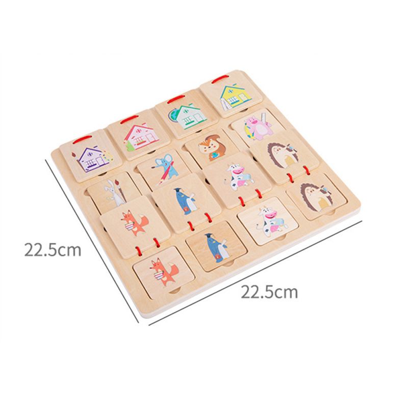 Fedezd fel az állatok világát ezzel az izgalmas állatos nyitogatós fából készült játékkal. Ez a játék nem csupán egy egyszerű képkirakó vagy memória játék, hanem kettő az egyben élményt kínál, hogy még több szórakozást nyújtson a kisgyermekeknek.