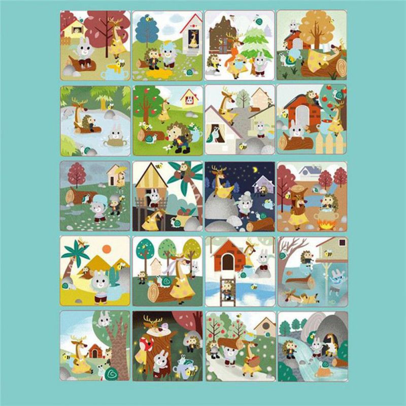 Állatok Keresése: A játék során a gyerekeknek különböző irányokban kell megtalálniuk az öt különböző állat helyzetét egy játéktáblán. Ehhez öt fakorong és 20 kétoldalas kartonlapot használnak, amelyek megfelelnek a képen látható tárgyaknak.
