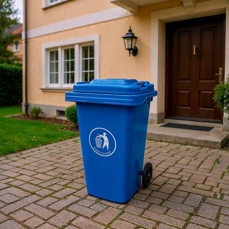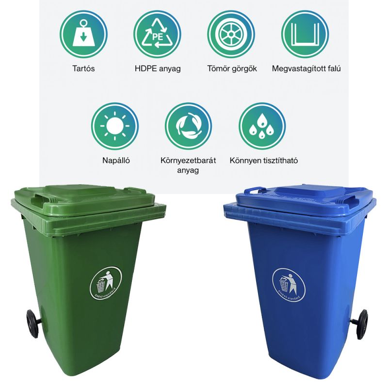 Könnyű mozgatás: A hulladéktárolóhoz tartozó tömör gumikerekek és ergonomikus fogantyú lehetővé teszik a könnyű mozgatást, így egyszerűen áthelyezhető vagy üríthető.