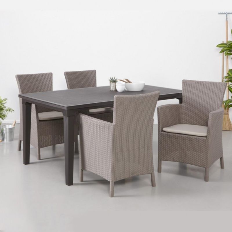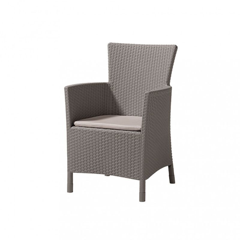 Az elegáns Rattan Style Iowa DC kerti fotel elegáns és sokoldalú kiegészítő, otthonához, kertjéhez vagy teraszához. A fotel nagyon tartós és megfelel a legigényesebb emberek szabványainak is. A bútorokat az Allibert gyártotta, amely egy csoportban működik olyan vállalatokkal, mint például a Keter vagy a Curver, akik magas szintű műanyag berendezéseket kínálnak