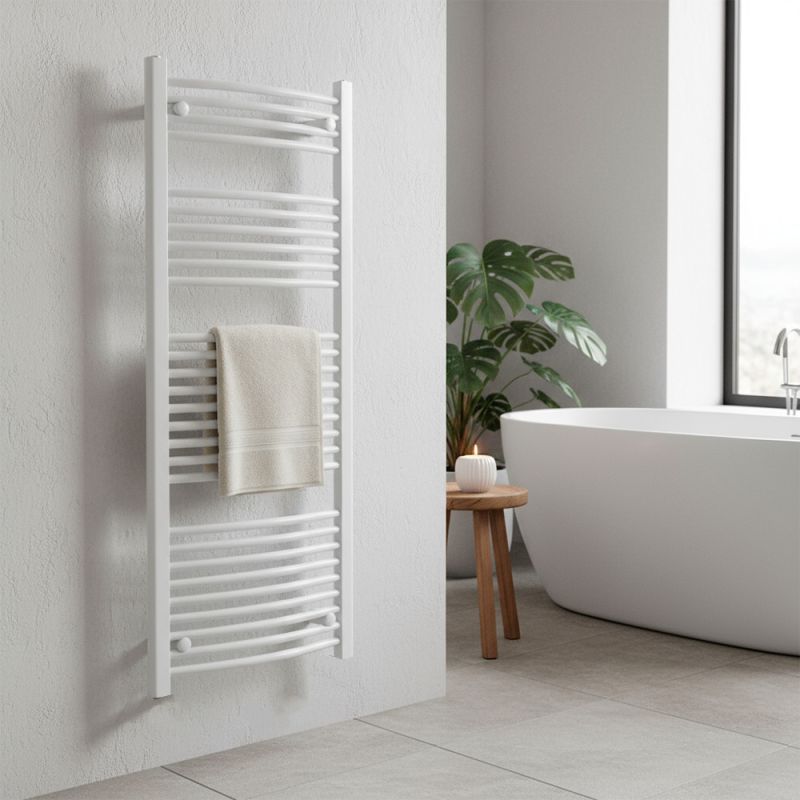 Válaszd a Leziter íves törölközőszárító radiátor 1400x600 mm fehér modellt, és tapasztald meg a modern fürdőszobák kényelmét, ahol a stílus és a funkcionalitás tökéletes harmóniában találkozik!
