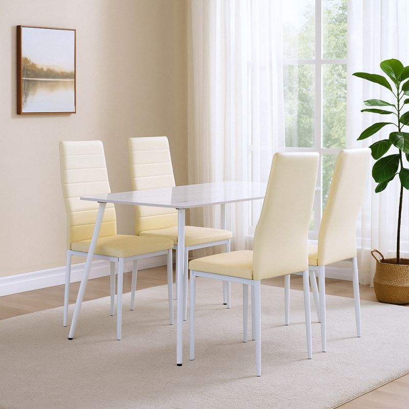 Jenna 4+1 étkezőgarnitúra – bézs dizájn, fehér kontraszt, letisztult karakter