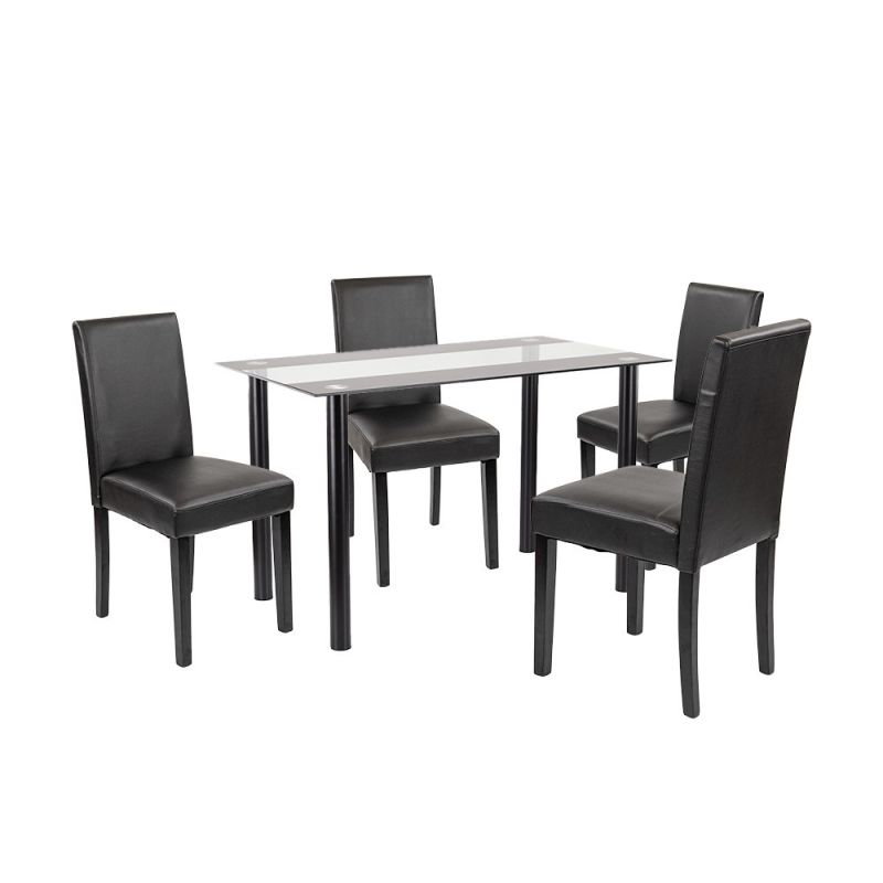 A szett négy darab Leziter Kelly széket is tartalmaz, amelyek fekete ECO bőr kárpitozással készültek. Az elegáns megjelenés mellett ezek a székek rendkívül könnyen tisztíthatók. A 4 cm vastag habszivacs ülőfelület hosszabb étkezések során is komfortot nyújt, a stabil fenyőfa lábak pedig 120 kg teherbírással garantálják a hosszú távú megbízhatóságot.