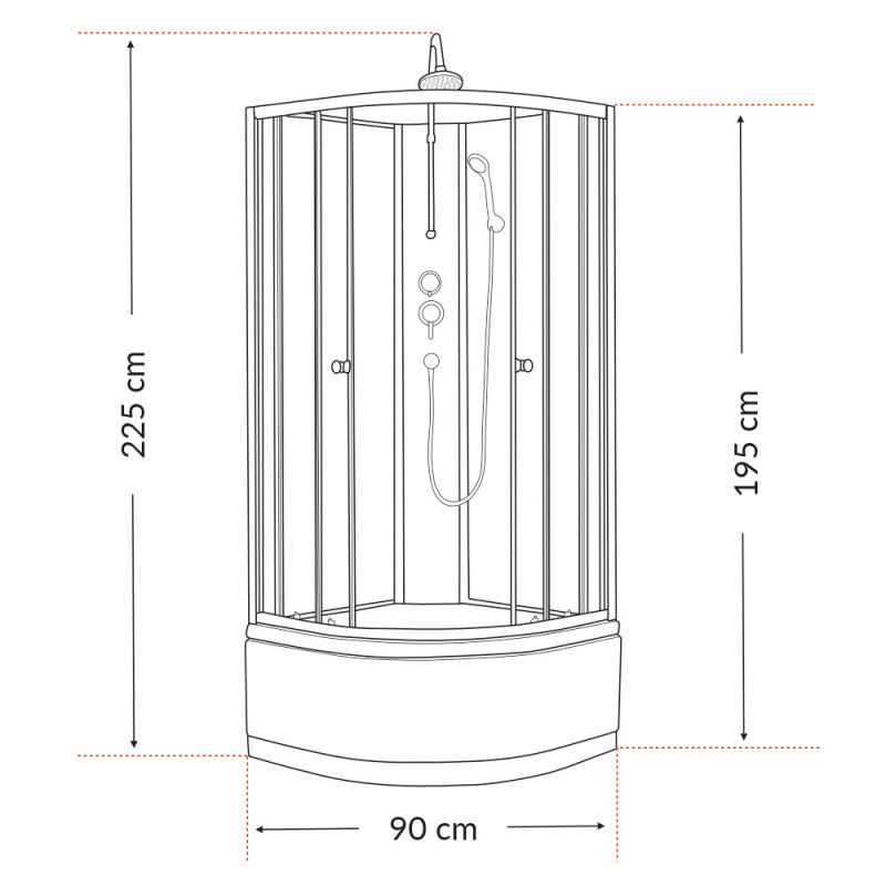 - Magasság: 225 cm (zuhanytálcával együtt)