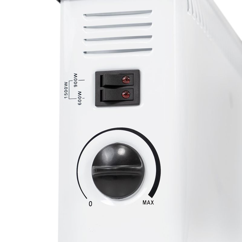 A mechanikus vezérlőpanel segítségével gyorsan és könnyedén beállítható a kívánt hőmérséklet. Az állítható termosztát folyamatosan figyeli a szobahőmérsékletet, és szükség esetén automatikusan ki- és bekapcsolja a fűtőtestet, így energiatakarékosan, de hatékonyan tartja fenn a kellemes meleget.