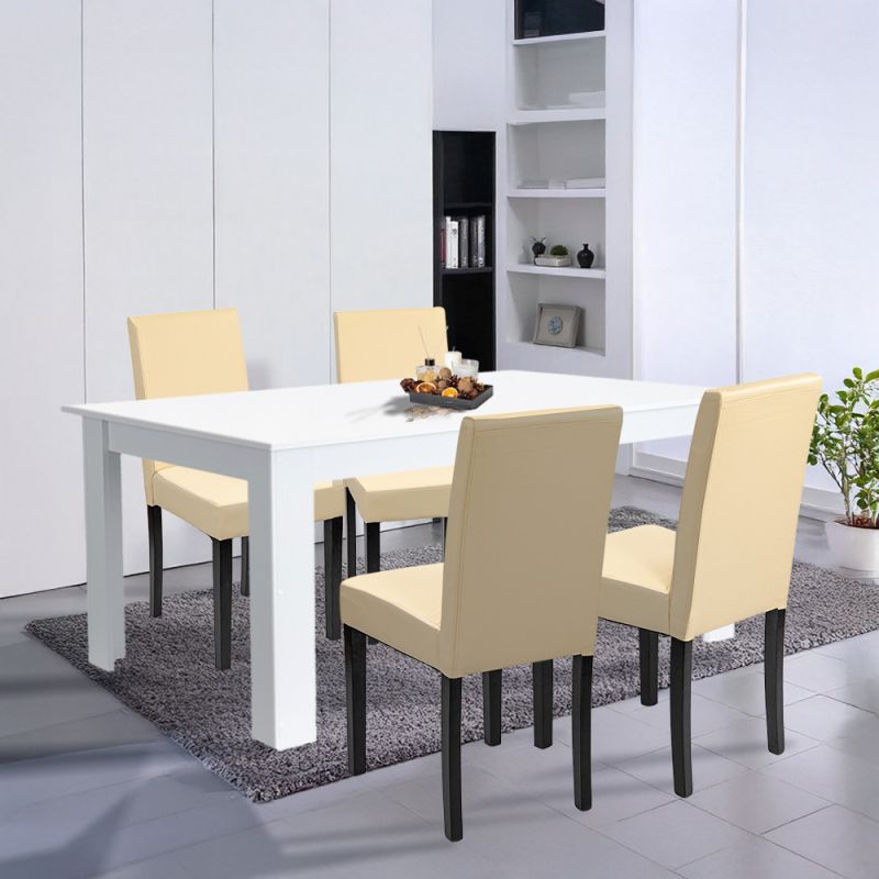 Te is unod már a billegő asztalokat és a kényelmetlen, nyikorgó székeket, amik elrontják a közös étkezések hangulatát? A mindennapi vacsorák, családi ünnepek vagy baráti összejövetelek során mindenki kényelmet és kellemes légkört keres — de egy instabil asztal vagy nehezen tisztítható felületek csak bosszúságot okoznak. Főleg, ha kisgyermekekkel vagy gyakori vendégekkel élsz együtt, ez folyamatos stressz forrása lehet. A Leziter Leon 4+1 étkezőgarnitúra fehér-bézs színben ezt a problémát végleg megoldja: praktikus méretű, mégis elegáns szett, amely négy kényelmes széket és egy stabil, praktikus étkezőasztalt kínál — tökéletes választás otthonra, irodába vagy vendéglátóhelyekre egyaránt.