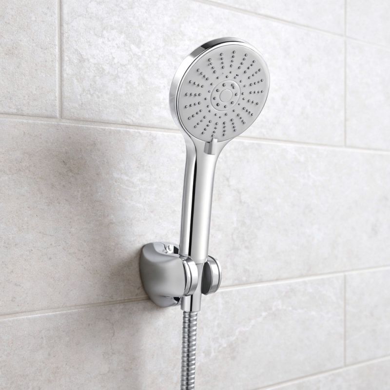 A csomag részét képező fali műanyag zuhanytartó lehetővé teszi a kézizuhany kényelmes és biztonságos elhelyezését. A felszerelés gyorsan és egyszerűen elvégezhető.
