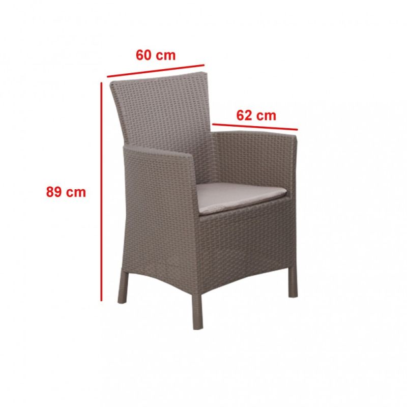Egy elegáns és kényelmes kerti fotel párnával kompletten. A széles színválaszték és az eredeti, rattanra emlékeztető felület még a legigényesebb felhasználó igényeit is kielégíti. UV sugárzásnak és az időjárás viszontagságainak ellenálló műanyagból készült. Könnyű tisztán tartani és nagyon egyszerű összeszerelni.