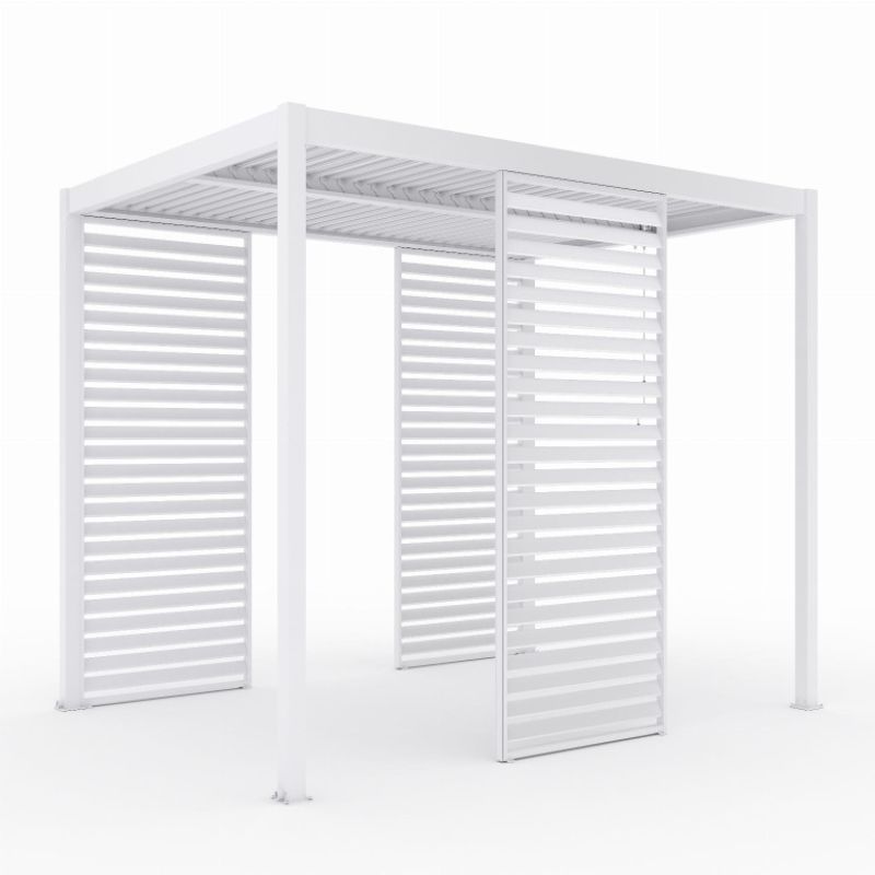 A mozgatható árnyékolólap praktikus megoldás pergola építésére. Az alumíniumból készült falat fokozottan ellenáll a változó időjárási viszonyoknak, így tökéletes kültéri használatra. A pergola falára több panel felszerelésével a teljes szerkezet optimálisan az Ön igényeihez igazítható. A beállítás lehetővé teszi a helyiségbe jutó nap mennyiségének beállítását.