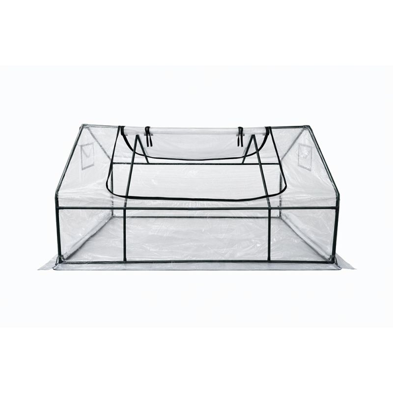 A 16×0,5 mm-es csövekből készült váz masszív szerkezetet alkot, amelyre a fólia feszesen rögzíthető. A feltekerhető nyílás és a cipzáros bejárat könnyű hozzáférést kínál a növényekhez, és lehetőséget ad a szellőzés szabályozására az adott növény igényei szerint.