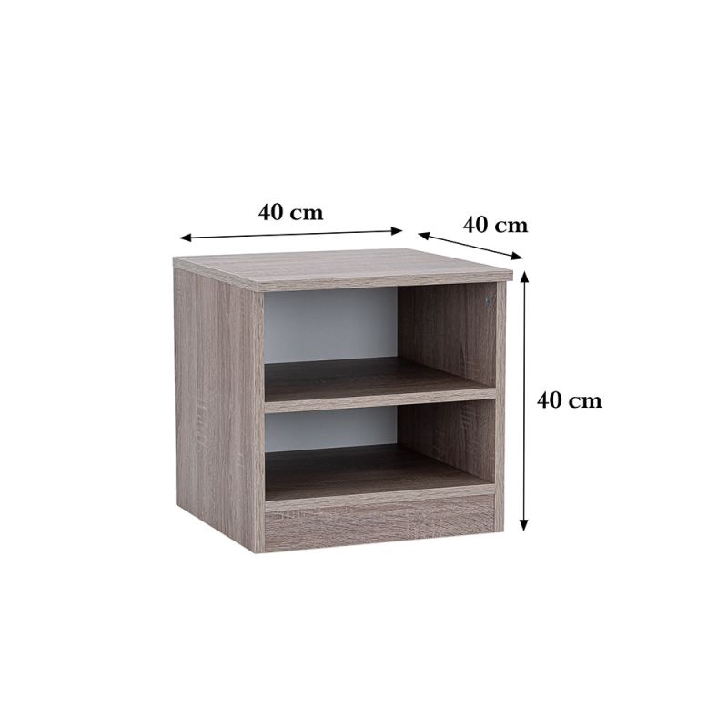 Az éjjeliszekrény 40x40x40 cm-es mérete tökéletesen illeszkedik a kisebb hálószobákba is, anélkül, hogy túl sok helyet foglalna. Az éjjeliszekrény 2 polccal lett kialakítva, ahol a fontosabb, gyakran használt tárgyakat tarthatod, könyveket, szemüveget vagy telefont.