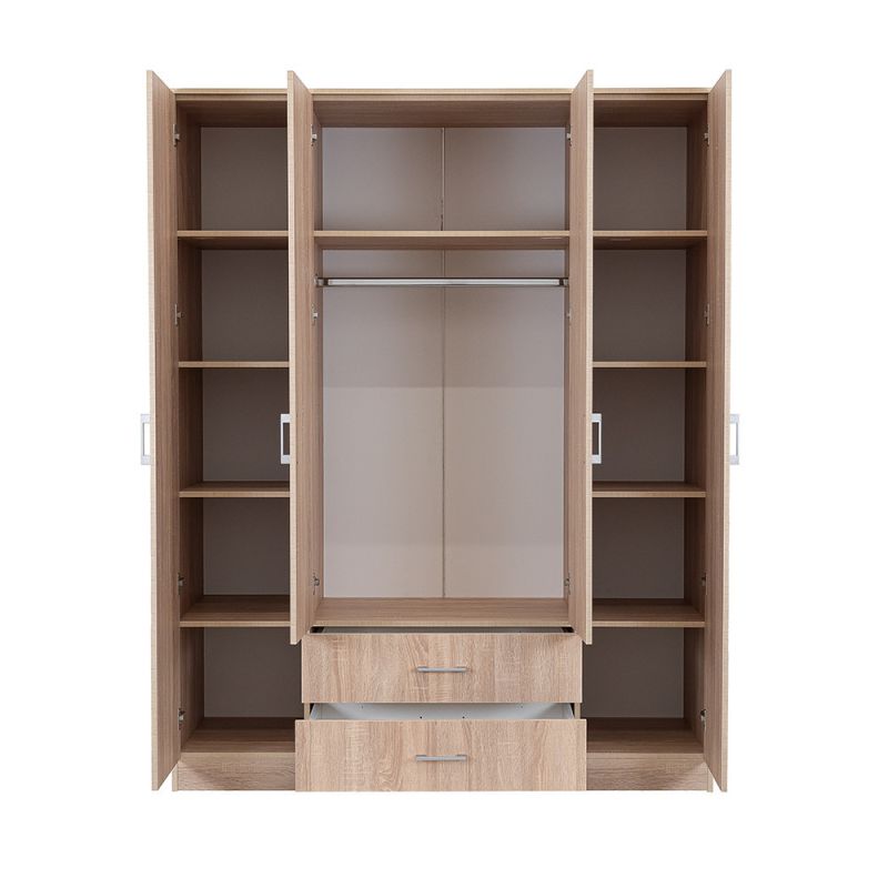 Az elegáns sonoma tölgy front és a fahatású sonoma tölgy korpusz ötvözete tökéletes harmóniát teremt a nappaliba vagy a hálószobába egyaránt. A 205 cm magas, 160 cm széles és 55 cm mély gardróbszekrény ideális választás mindenki számára, aki szeretné rendszerezni ruháit és kiegészítőit.