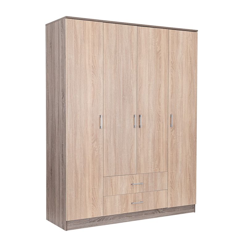 Az elegáns sonoma tölgy front és a fahatású yorki tölgy korpusz ötvözete tökéletes harmóniát teremt a nappaliba vagy a hálószobába egyaránt. A 205 cm magas, 160 cm széles és 55 cm mély gardróbszekrény ideális választás mindenki számára, aki szeretné rendszerezni ruháit és kiegészítőit.