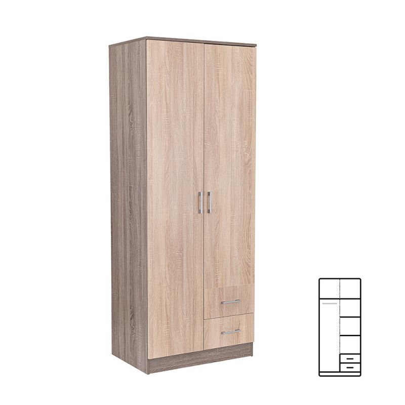 Az elegáns sonoma tölgy front és a fahatású yorki tölgy korpusz ötvözete tökéletes harmóniát teremt a nappaliba vagy a hálószobába egyaránt. A 205 cm magas, 80 cm széles és 55 cm mély gardróbszekrény ideális választás mindenki számára, aki szeretné rendszerezni ruháit és kiegészítőit.