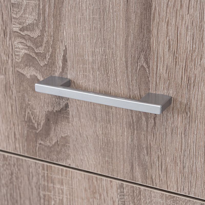 A matt króm hatású műanyag fogantyúk modern megjelenést kölcsönöznek, míg a két szárnyú nyílóajtó révén az egész szekrény belseje könnyen áttekinthető, így minden ruhadarab és tárgy könnyedén elérhető. Az öt polc és a két görgős fiók bőséges tárolóhelyet biztosít legyen szó ágyneműről, szezonon kívüli ruházatról vagy yorki tölgyneműkről.