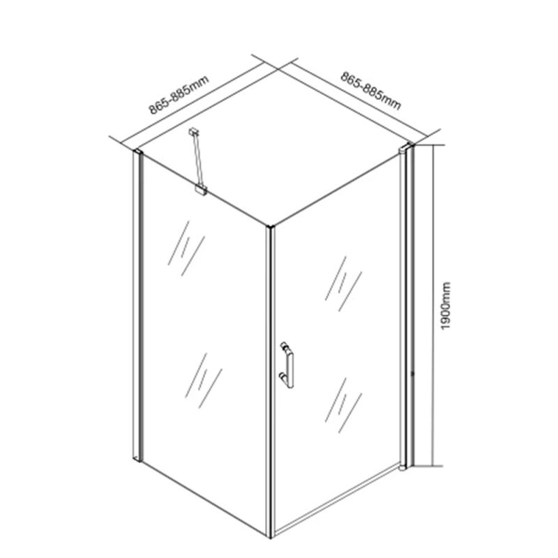 Alumínium, króm profillal rendelkezik, mely garantálja a zuhanykabin tartósságát. A zuhanykabin névleges mérete 90 x 90 x 190 cm. 6 mm edzett biztonsági üvege teszi biztonságossá a mindennapos tusolást. Zuhanytálca nélkül kapható. Egyszárnyú, emelő mechanikás ajtó, univerzális szerelés jellemzi. A funkcionalitás mellett természetesen a zuhanykabin megjelenésére is nagy figyelmet fordítottak. Üvegfelületének, króm profiljának és letisztult, modern vonalainak köszönhetően elegáns megjelenést teremt minden fürdőszobának. A beépítési méret: 84 cm.