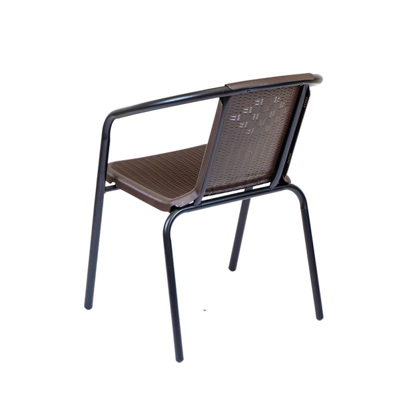 Ez egy egyszerű és nagyszerű modern kerti szék, ami rattan hatású fonott ülőfelülettel rendelkezik. Kiválóan alkalmas étkezéshez és a szabadban történő pihenéshez is. Akár lakossági, de üzleti használatra is tökéletes, például éttermek, bisztrók, szórakozóhelyek számára. Nagyon praktikus, mert egymásra helyezhető, azaz rakatolható, így a tárolása egyszerű, nem foglal sok helyet. Acélvázának köszönhetően stabil és masszív kivitel, időtálló megoldás, műanyag felületének köszönhetően könnyen tisztántartható.
