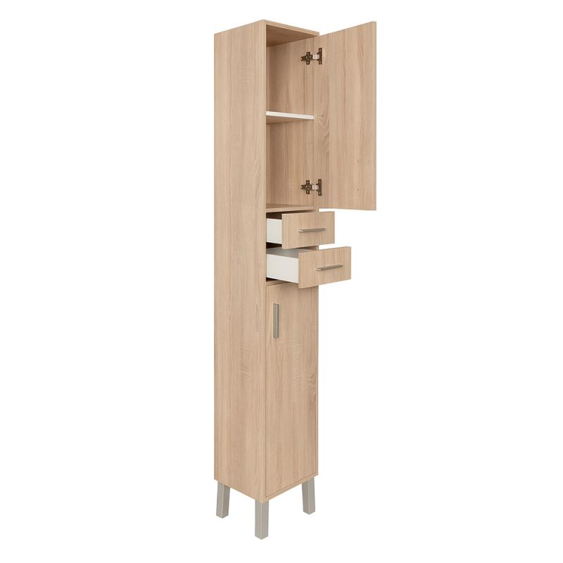 A funkcionalitás mellett természetesen a bútor megjelenésére is nagy figyelmet fordítottak. Sonoma tölgy színének és letisztult modern vonalainak köszönhetően harmóniát teremt az összes fürdőszoba hangulatában.