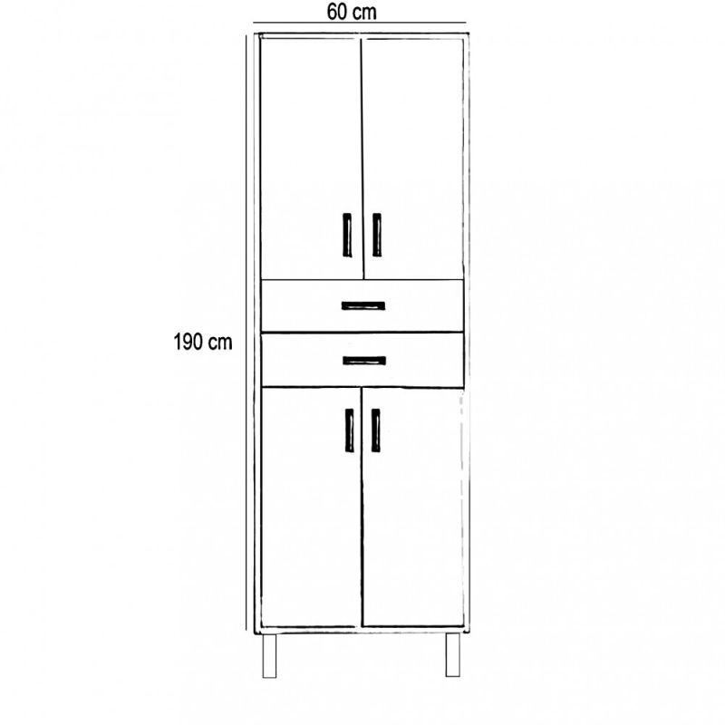 A fürdőszoba bútor kevés helyet foglal viszont rendelkezik két darab két ajtós szekrénnyel és két tágas fiókkal ahol kényelmesen elférnek a fürdőszobai pipere eszközök. Kevés helyigénye miatt kisebb fürdőszobák berendezésére is alkalmas, például panel lakásokban. A termék magas minőségű bútorlapból készül és színben passzoló élzárókkal van ellátva. A fürdőszoba bútor álló kivitelben kapható.