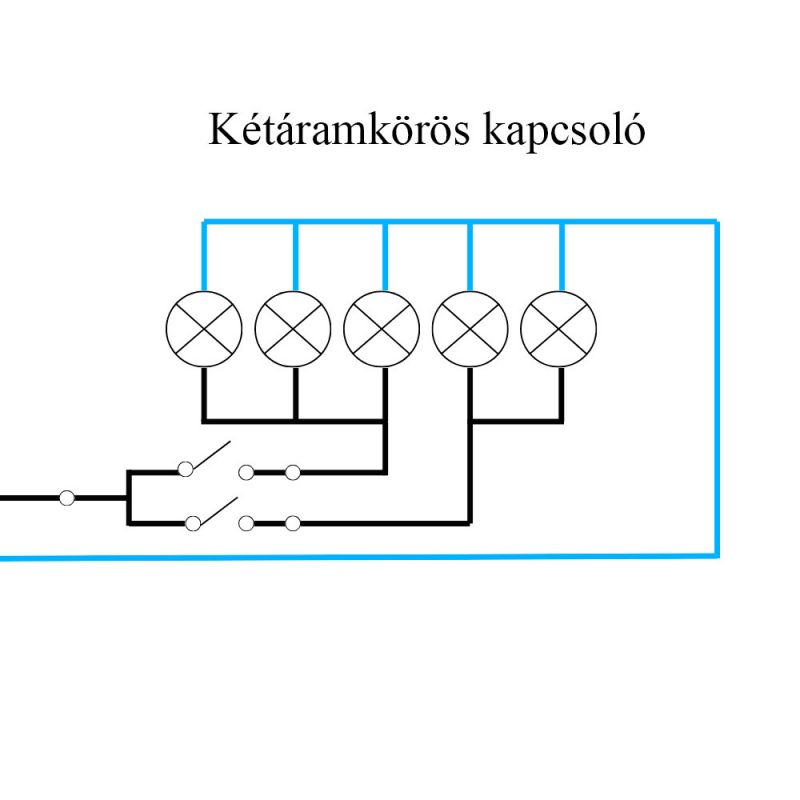 - Kapcsolási mód: Két különálló világítási kör független kapcsolása