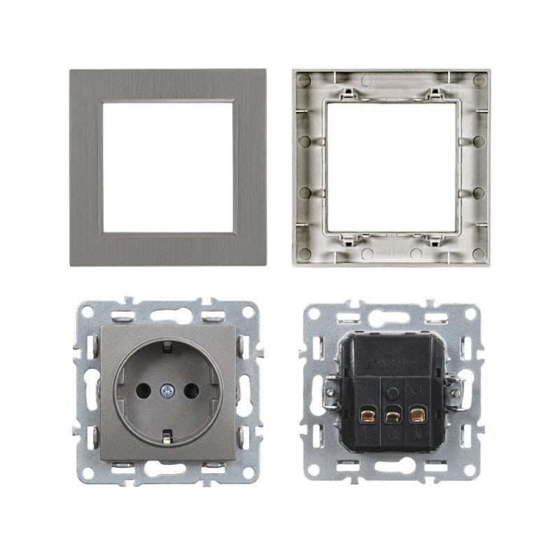 Nova földelt csatlakozóaljzat dugalj 16A 250V szürke kerettel – megbízható hálózati csatlakozás, egységes megjelenés