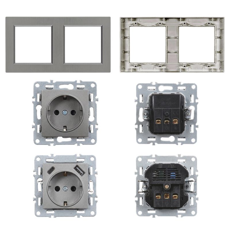 A két külön modul (földelt dugalj és USB aljzat) gyárilag beépített a fehér Nova kettes vízszintes keretbe, így a telepítés után a szerelvény teljes, letisztult megjelenést nyújt. A lekerekített forma és a süllyesztett kivitel vizuálisan is diszkrét, elegáns megoldást kínál a modern belső terekben.